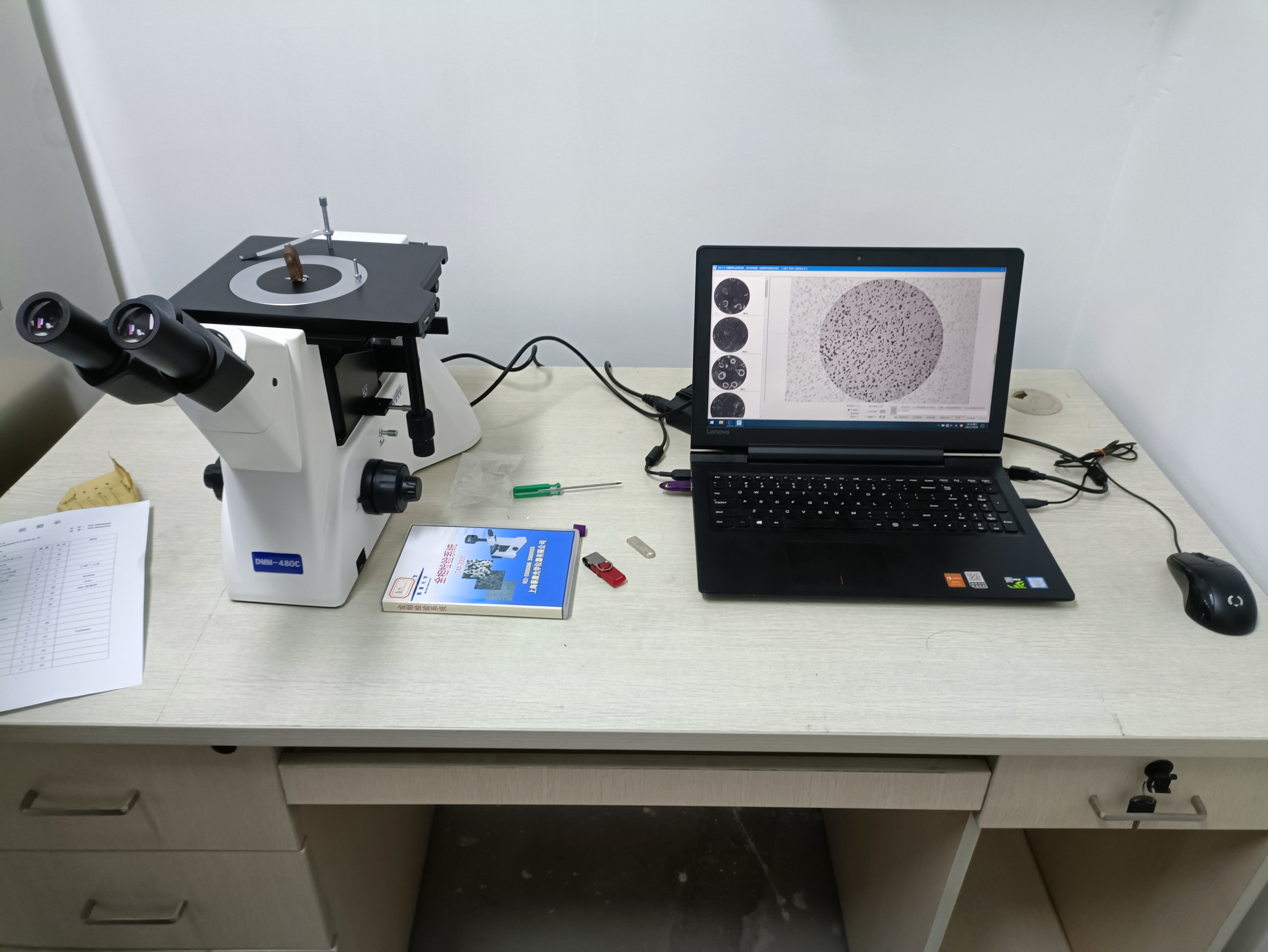 新興河北工程技術有限公司選購上海蔡康光學金相顯微鏡一套,倒置金相顯微鏡DMM-480C,金相分析軟件DM- 3000,金相試樣磨樣機MPJ-25,金相試樣磨拋機YMP-2設 備調試現場。