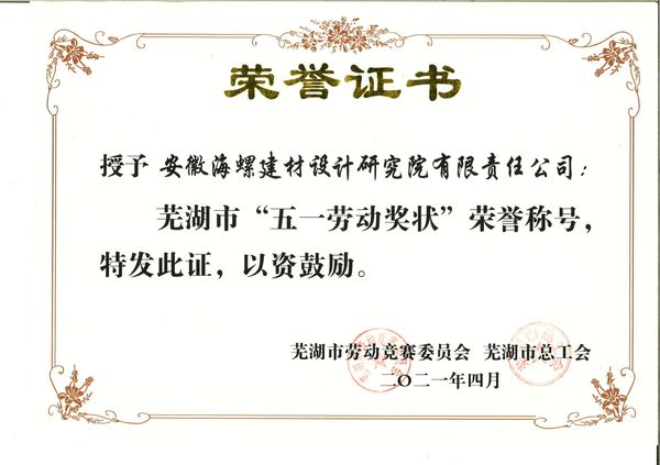 日前,蕪湖市總工會在全市范圍內組織開展了2021年“五一勞動獎狀”、“五一勞動獎章”和“工人先鋒號”評比,經集團審議上報,蕪湖市總工會、蕪湖市勞動競賽委員會綜合評審及社會公示后,公司最終在眾多企業中脫穎而出,獲得2021年蕪湖市“五一勞動獎狀”榮譽稱號。