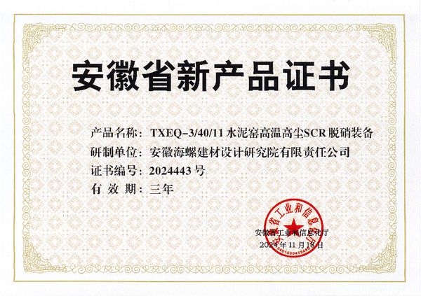 近日,安徽省工業(yè)和信息化廳公布了2024年第三批省首臺(tái)套重大技術(shù)裝備名單,海螺設(shè)計(jì)院“水泥窯高溫高塵SCR脫硝關(guān)鍵技術(shù)及成套裝備”榜上有名。此前,該項(xiàng)目于11月18日通過了安徽省新產(chǎn)品認(rèn)定。